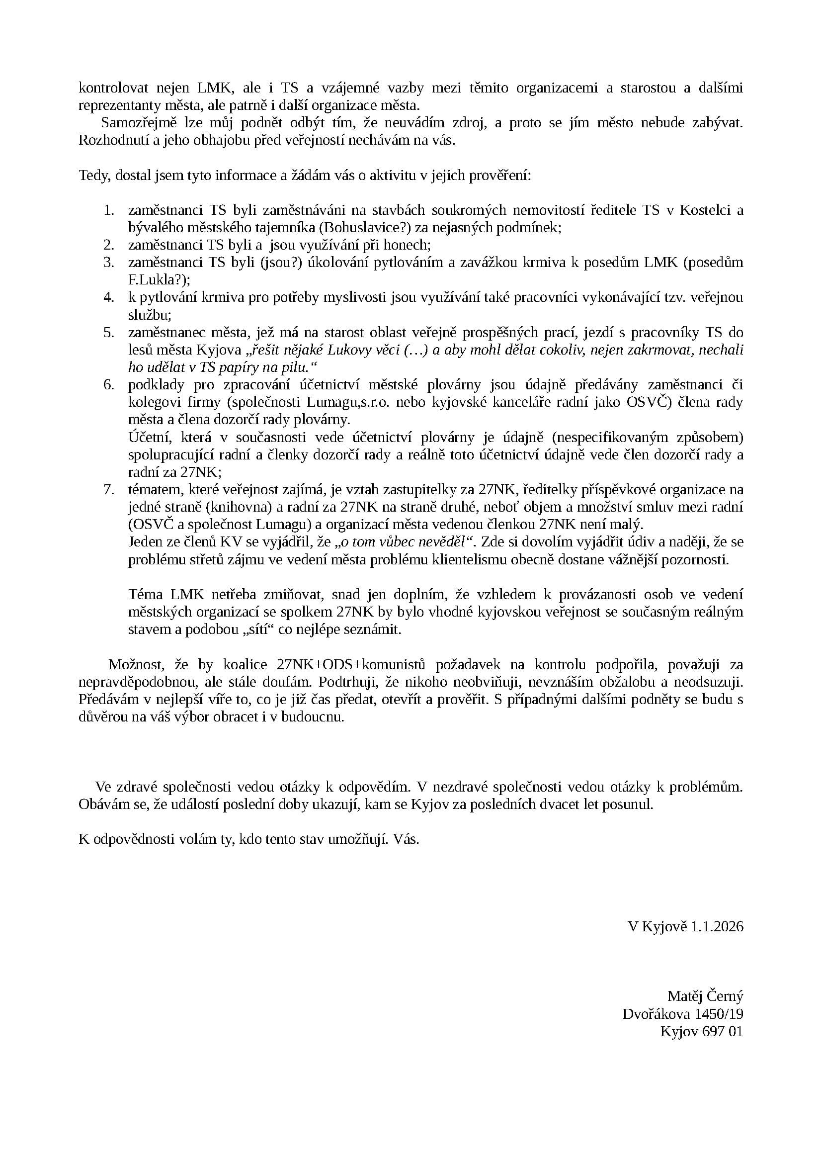 Každopádně poté, co místostarosta zařídil zveřejnění dopisu adresovaného členům výborů, vnímám jej jako veřejný a rozhodl jsem se ho dát k dispozici i zde.